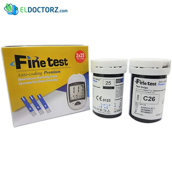 - تحتوي علبة شرائط قياس السكر فاين تيست Fine Test على 50 شريط تحليل سكر.
